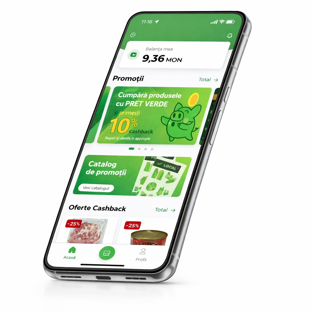 Catalogul de promoții este disponibil direct în aplicație, în secțiunea specială „Promoții”. Acolo poți vedea ofertele curente, reducerile și produsele recomandate pe care le poți cumpăra folosind punctele acumulate.