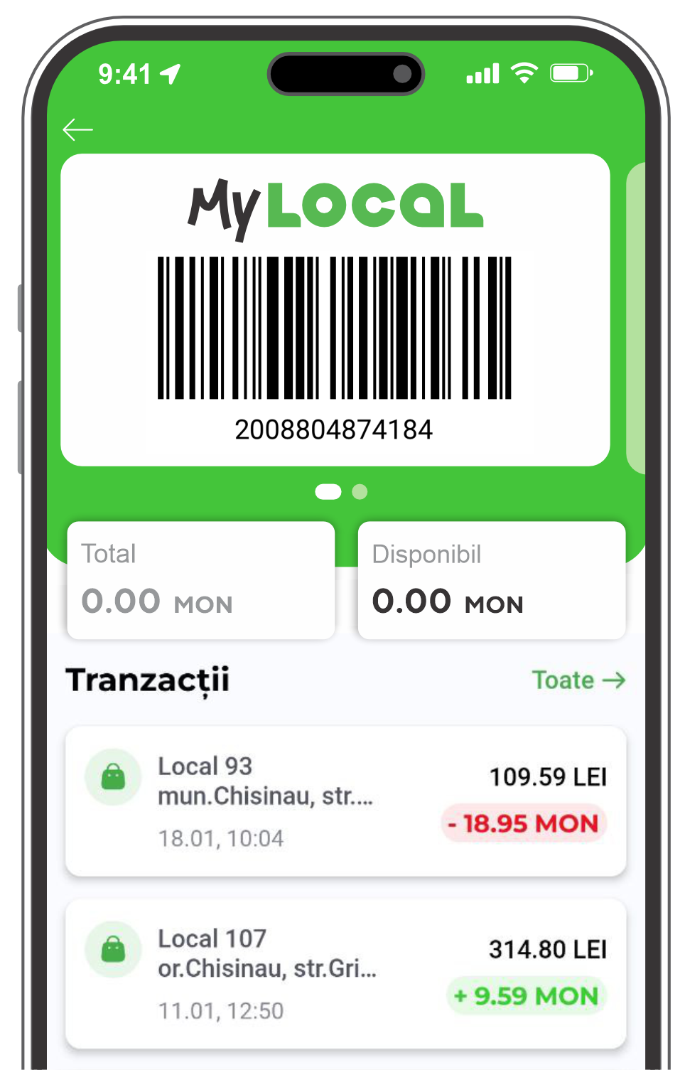 Monedele sunt afișate în aplicația My Local în secțiunea dedicată acumulărilor și tranzacțiilor.